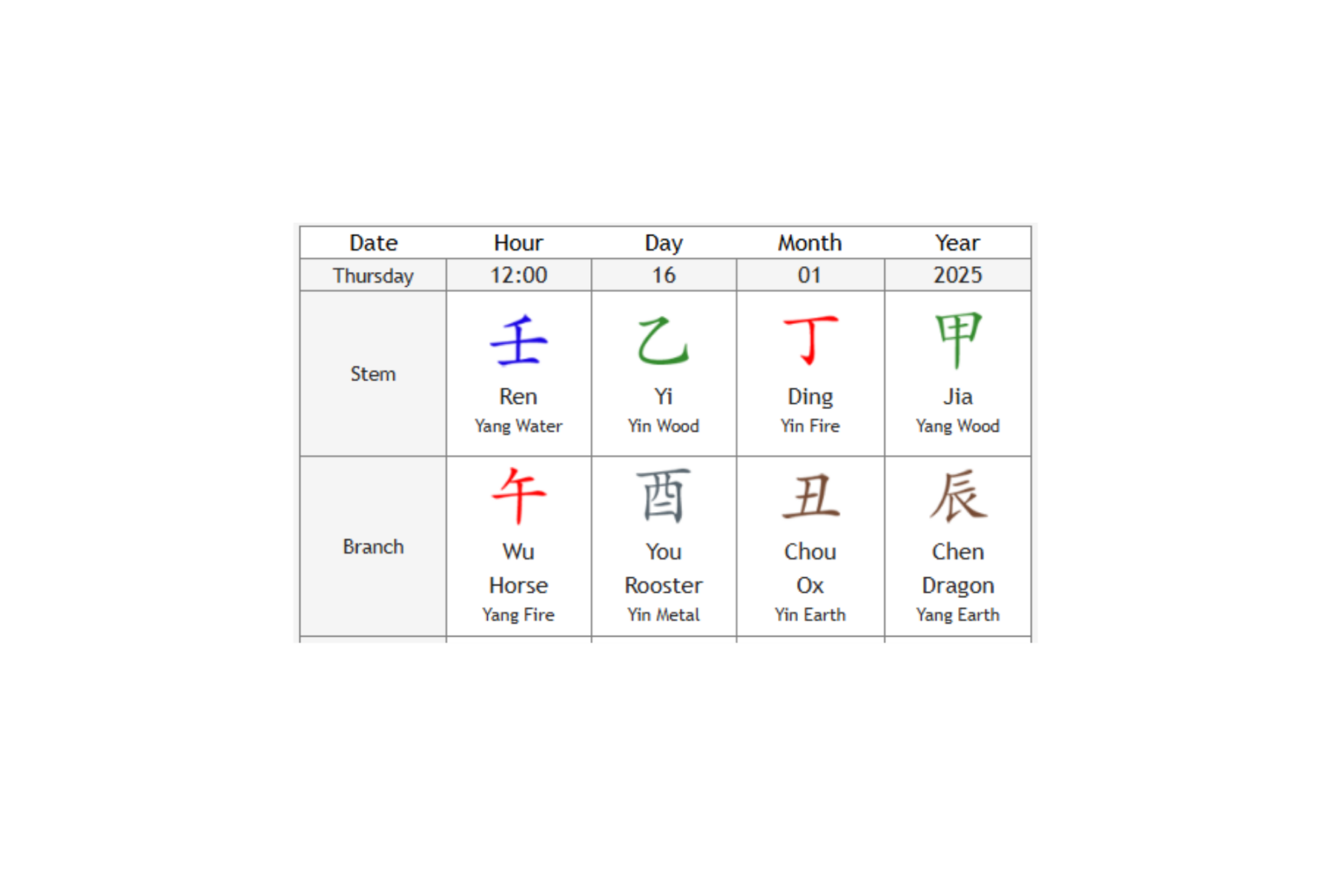 Wenn du dein Geburtsdatum in einen BaZi-Rechner eingibst, entsteht dein persönliches Geburtschart. Dieses Chart ist auch als Geburtstagskarte, BaZi-Chart oder Natal Chart bekannt.